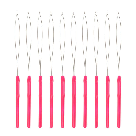 10 Pcs Hair Extension Loop Needle Threader Pulling Hook Tool and Bead Device Tool Loop Threader for Micro Rings beads and Hair or Feather Extensions (Black)