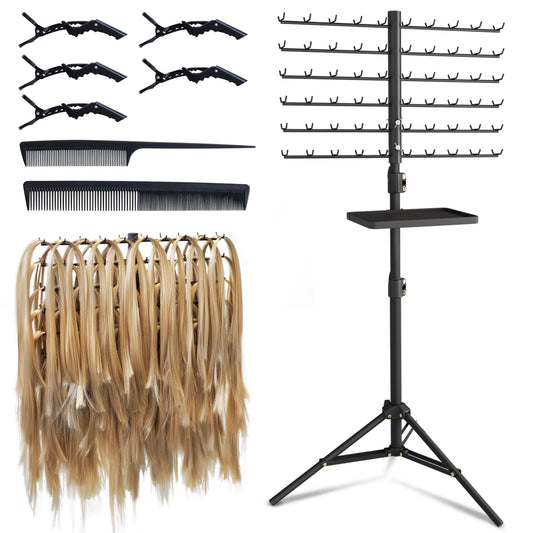 120-Peg Braiding Hair Rack Standing, with Salon Tray Hair Extension Holder Hanger, Hair Divider Rack for Braiding Hair Separator Stand, Hair Braiding Rack Display Stand for Hairstylist Braiders, Pink