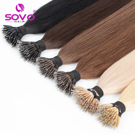 100 strands Nano Rings Micro Links Human Hair Extensions Natural Blonde Micro Bead Loop Pre Bonded Remy European Straight Hair