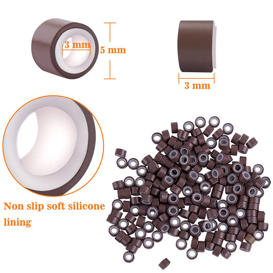 Duufin 2500 Pieces Hair Extentions Micro Links Rings Beads 5.0mm Silicone Lined Beads in 5 Colors Hair Feather Extensions Tool for Women and Men