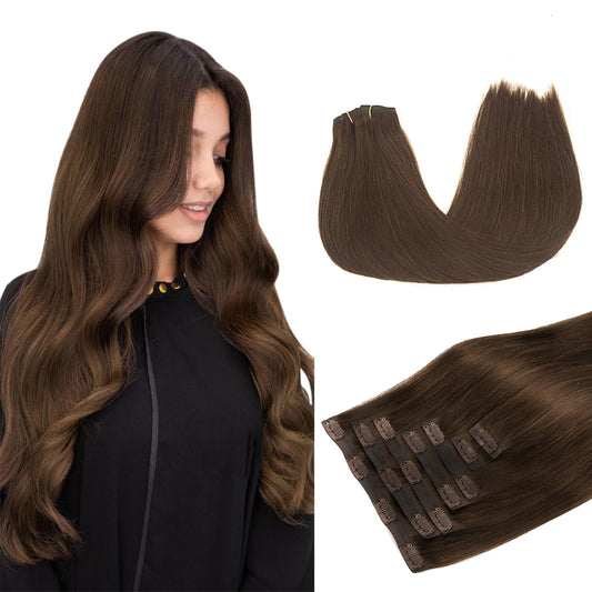 DOORES Seamless Clip in Hair Extensions Real Human Hair, Jet Black 150g 7pcs 20 Inch, Hair Extensions Clip in Human Hair Extensions Clip ins with Thin Weft Thick Straight Hair