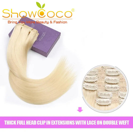 7pcs Clip in Human Straight Remy Hair 16-24 Inch ShowCoco 100% Remy hair extensi0on Clip-on hair