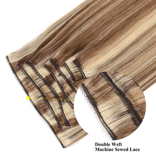 Balayage Human Hair Clip in Extensions Natural Human Hair Chestnut Brown with Blonde Brazilian Straight Hair Clip in Hairpieces