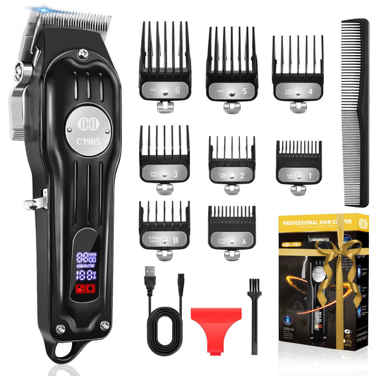 CIICII Hair Clippers for Men Professional, Cordless Barber Clippers for Hair Cutting (12Pcs Rechargeable USB Adjustable LCD Display Hair Beard Grooming Trimming Haircut Kit) for DIY Home Barber Salon