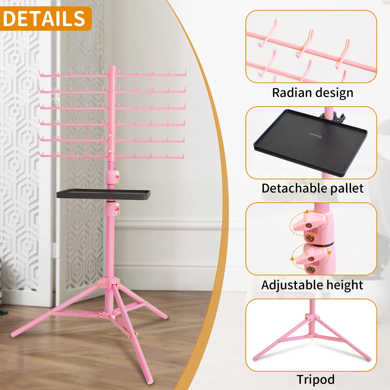 120-Peg Braiding Hair Rack Standing, with Salon Tray Hair Extension Holder Hanger, Hair Divider Rack for Braiding Hair Separator Stand, Hair Braiding Rack Display Stand for Hairstylist Braiders, Pink