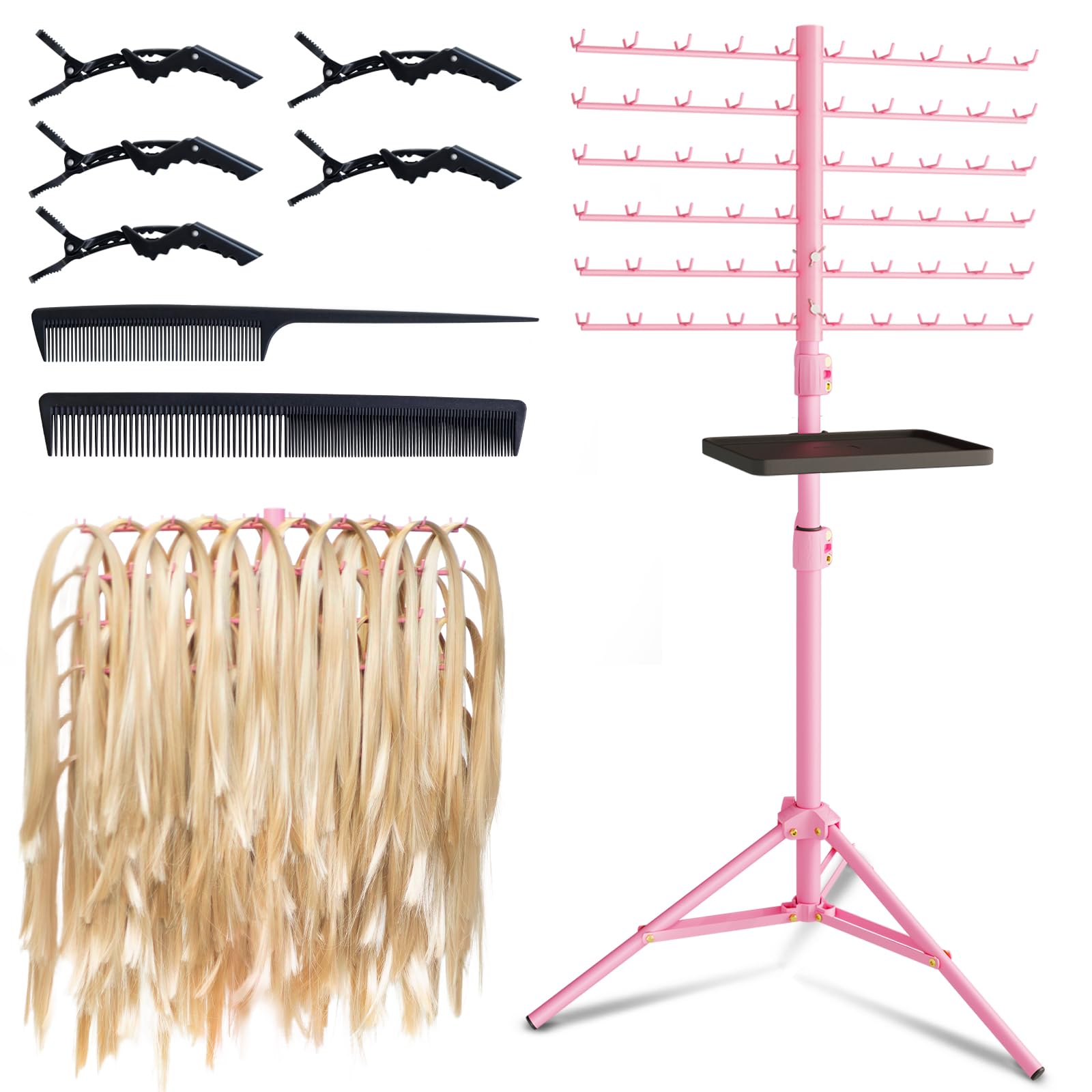 - Efficient Storage with 120 Pegs: This pink hair braiding rack offers 120 pegs, organizing hair extensions like tinsel, ombre, and human hair. It’s an essential tool for stylists, keeping hair neatly displayed and easy to access for efficient styling sessions.
