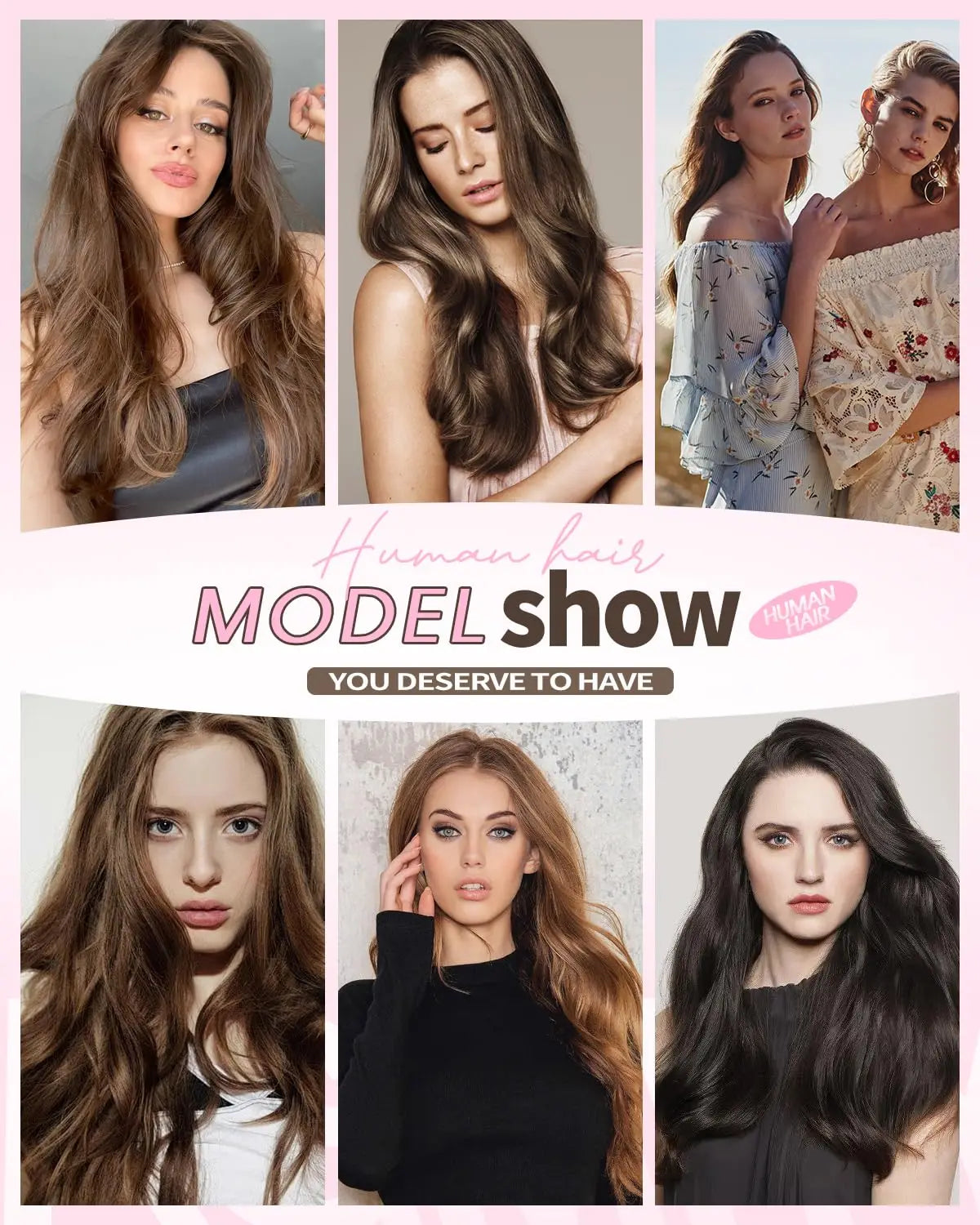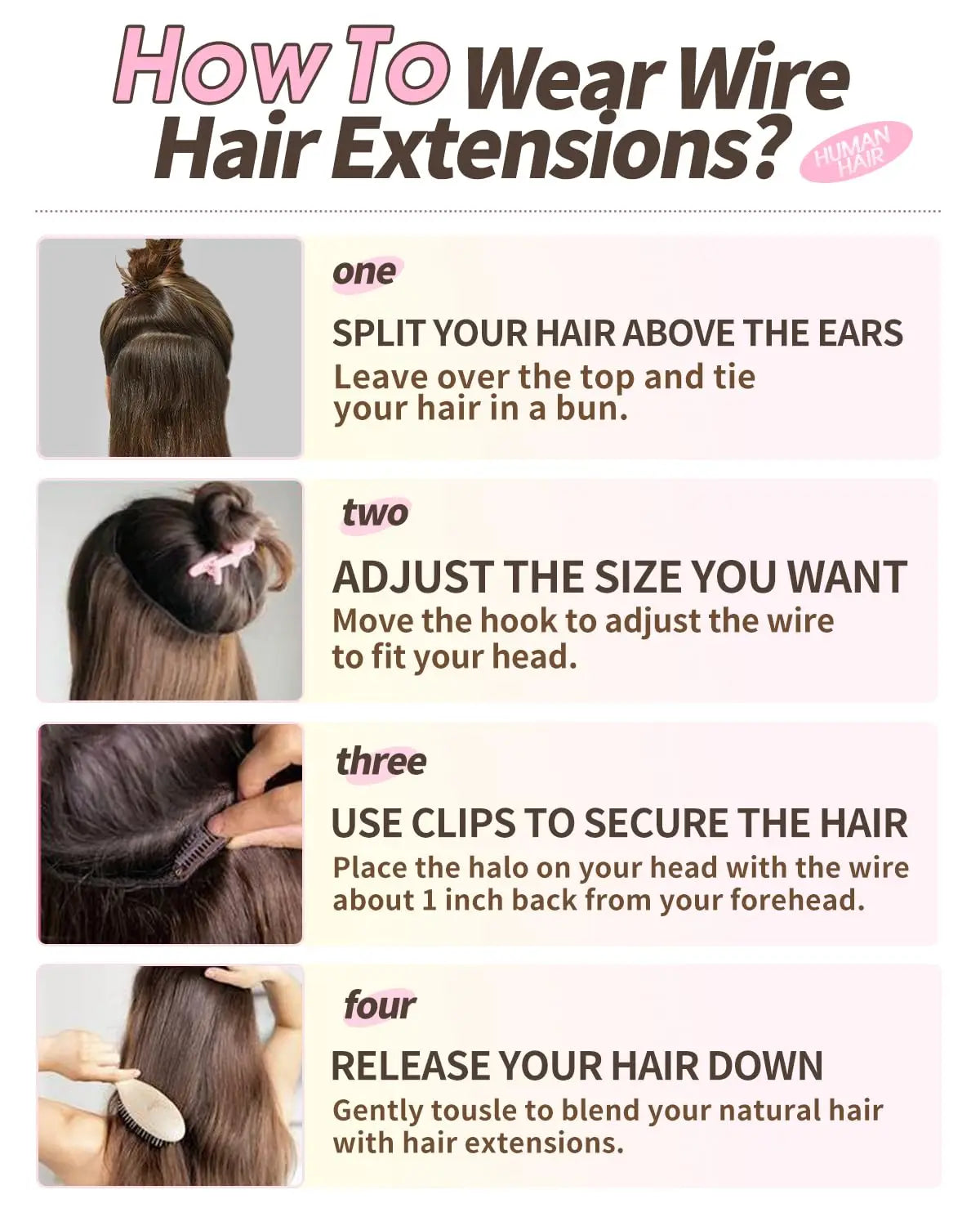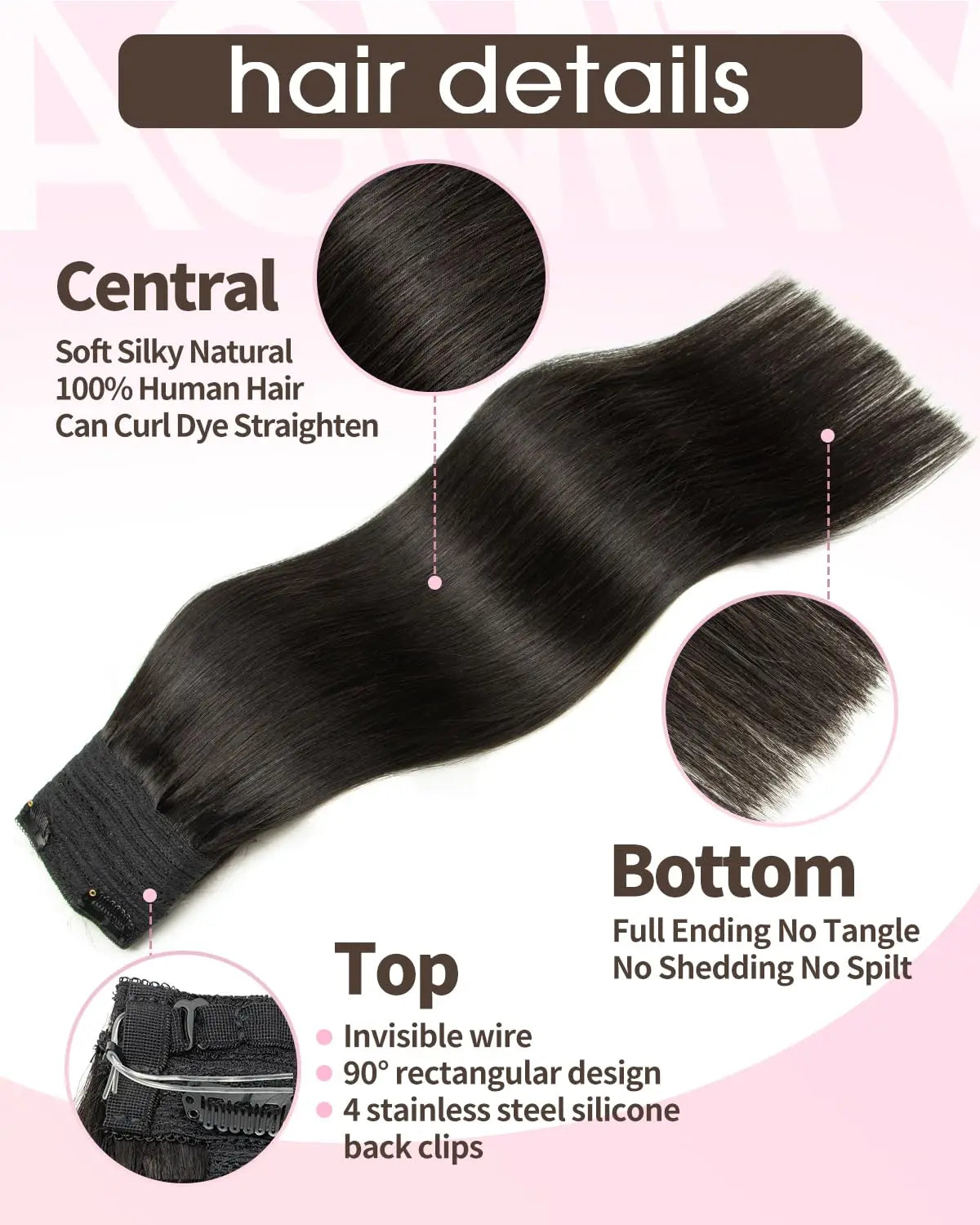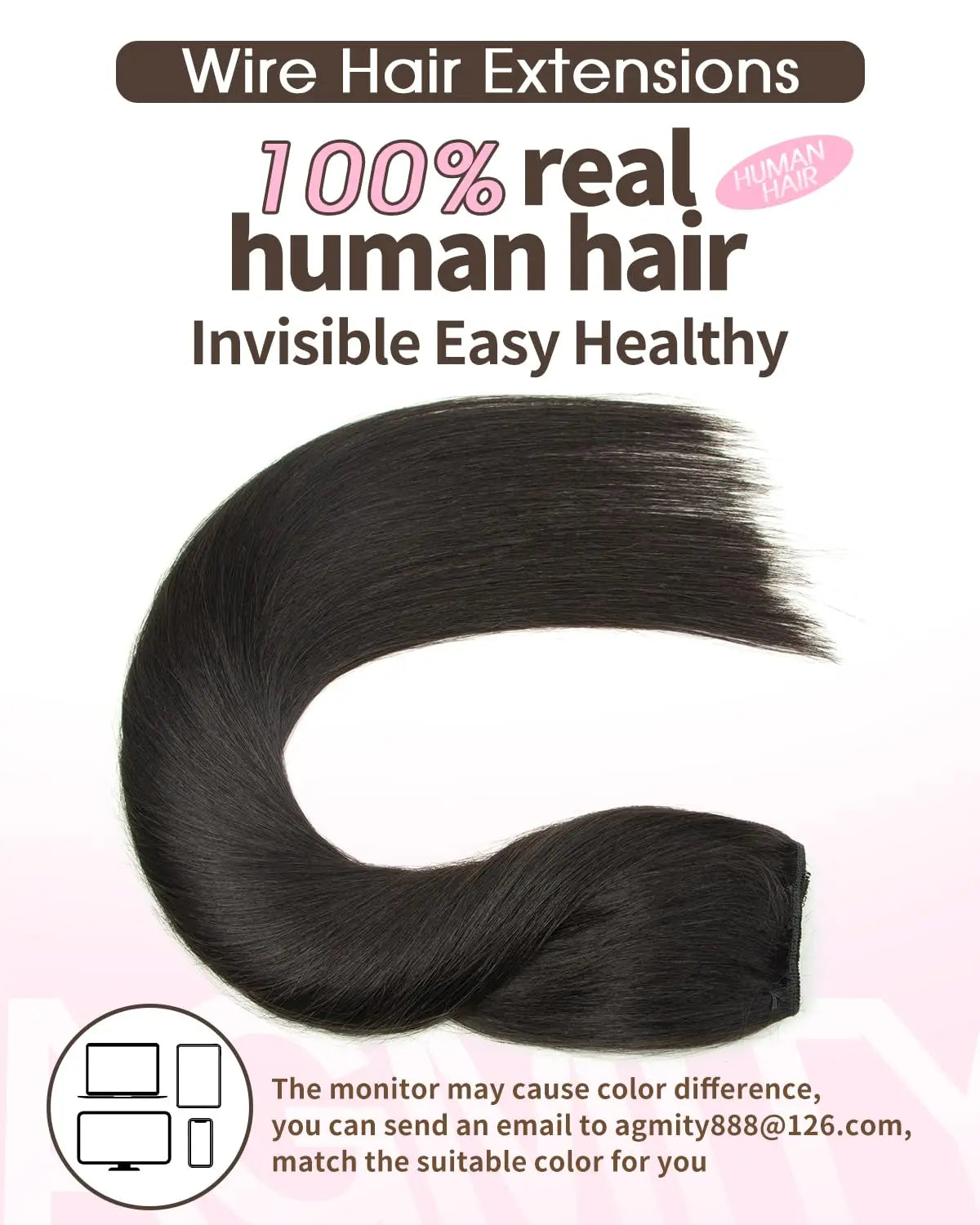 Human Hair Extensions Wire Hair #1B 100Gram Straight Layered Natural Hairpiece with Transparent Fish Line Human Hair Extensions