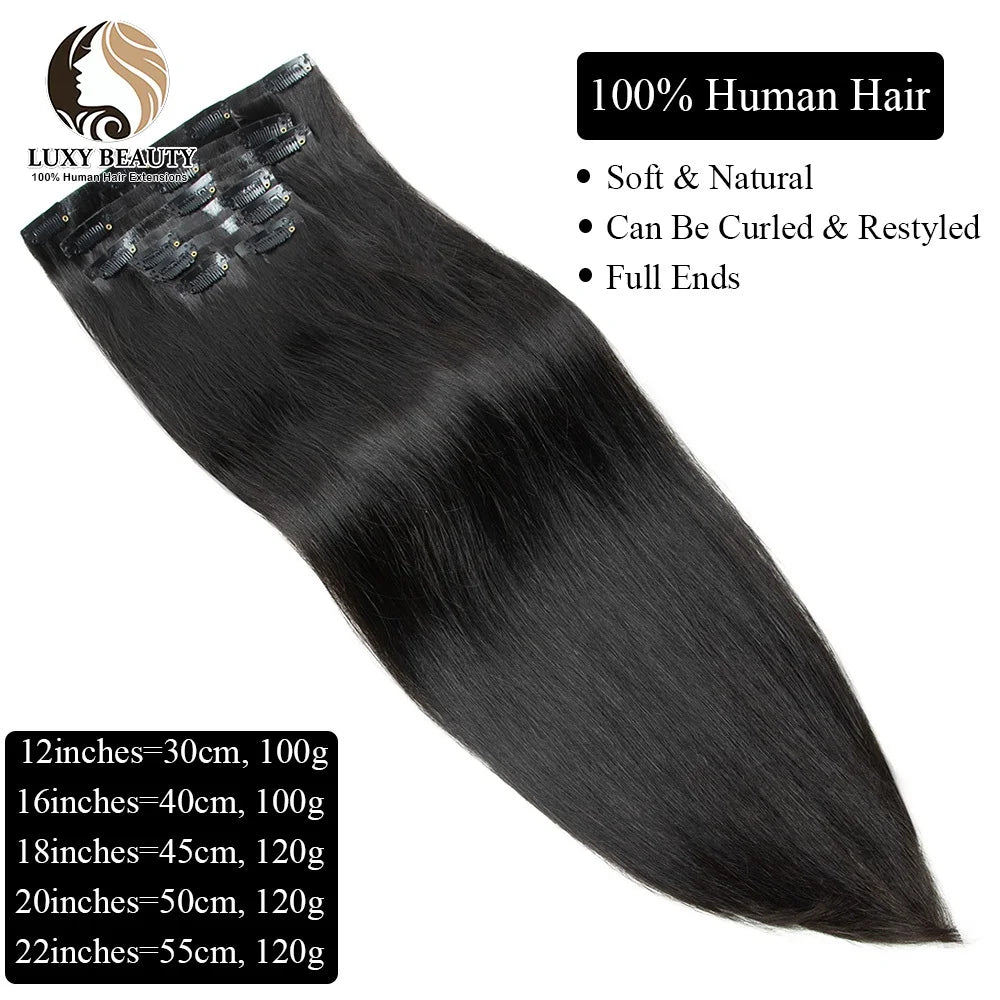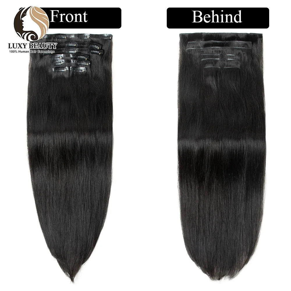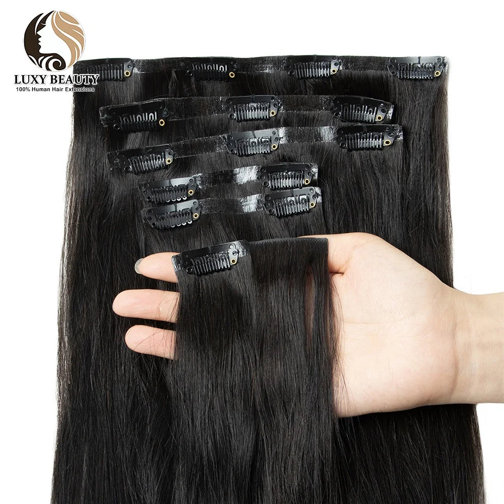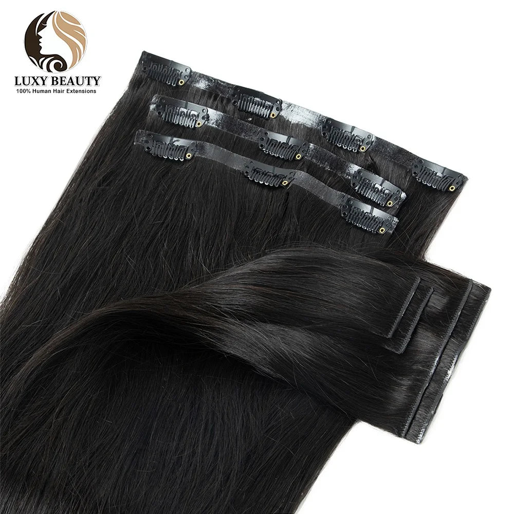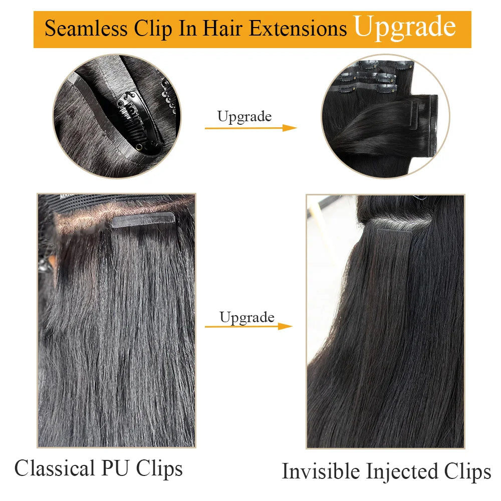 Invisible PU Clip In Hair Extensions Human Hair Injected PU Tape Weft Hair Extensions Brown Blonde Black Clip On Hair 7Pcs/set