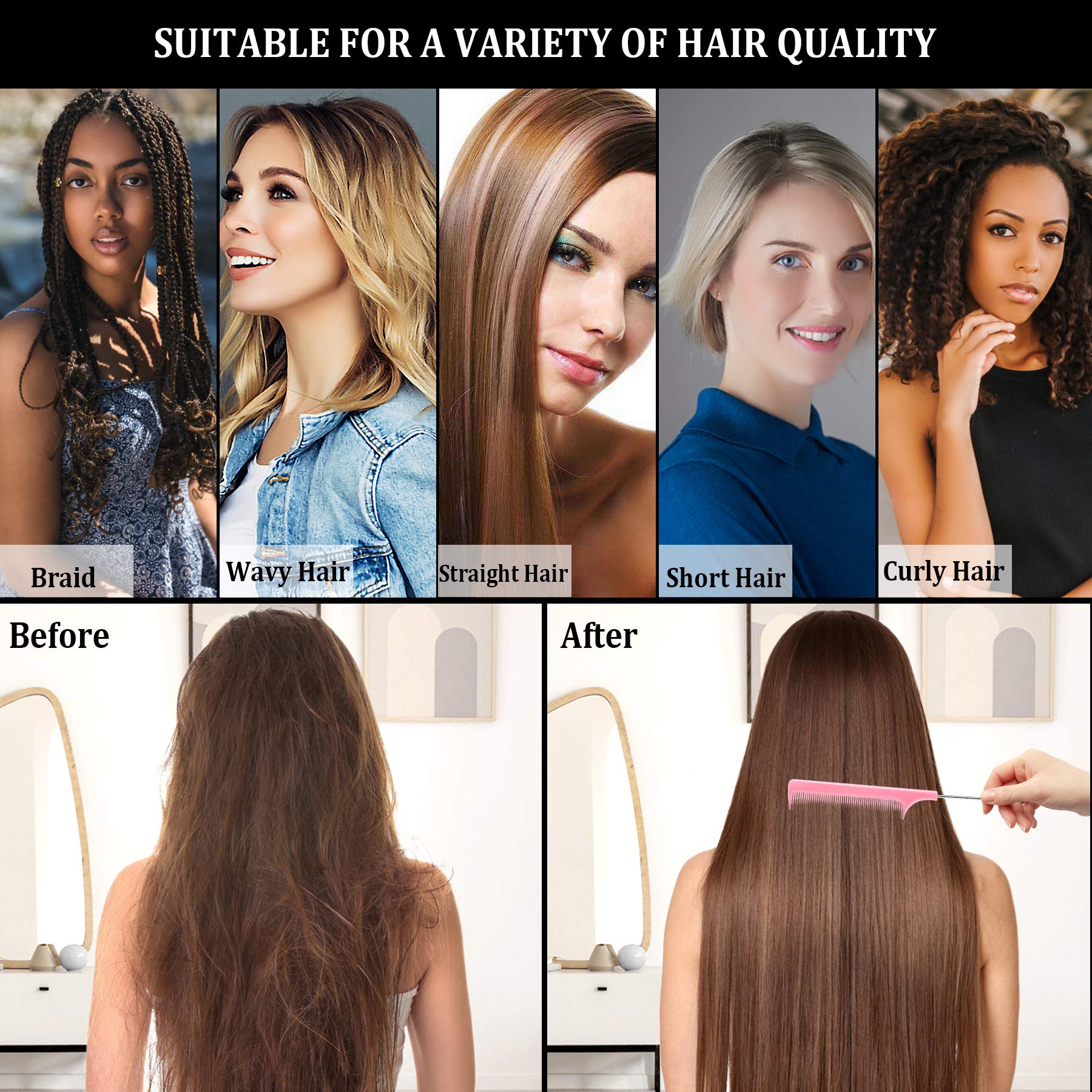 - FINE TOOTH COMB : The end of the fine tooth comb can comb your hair, stainless steel end can help you separate hair, it is anti-static. Suitable for straight hair, curly hair, short hair, wet hair, thick hair, etc.