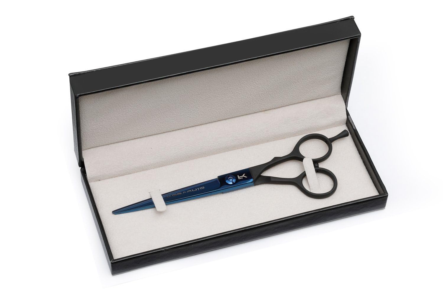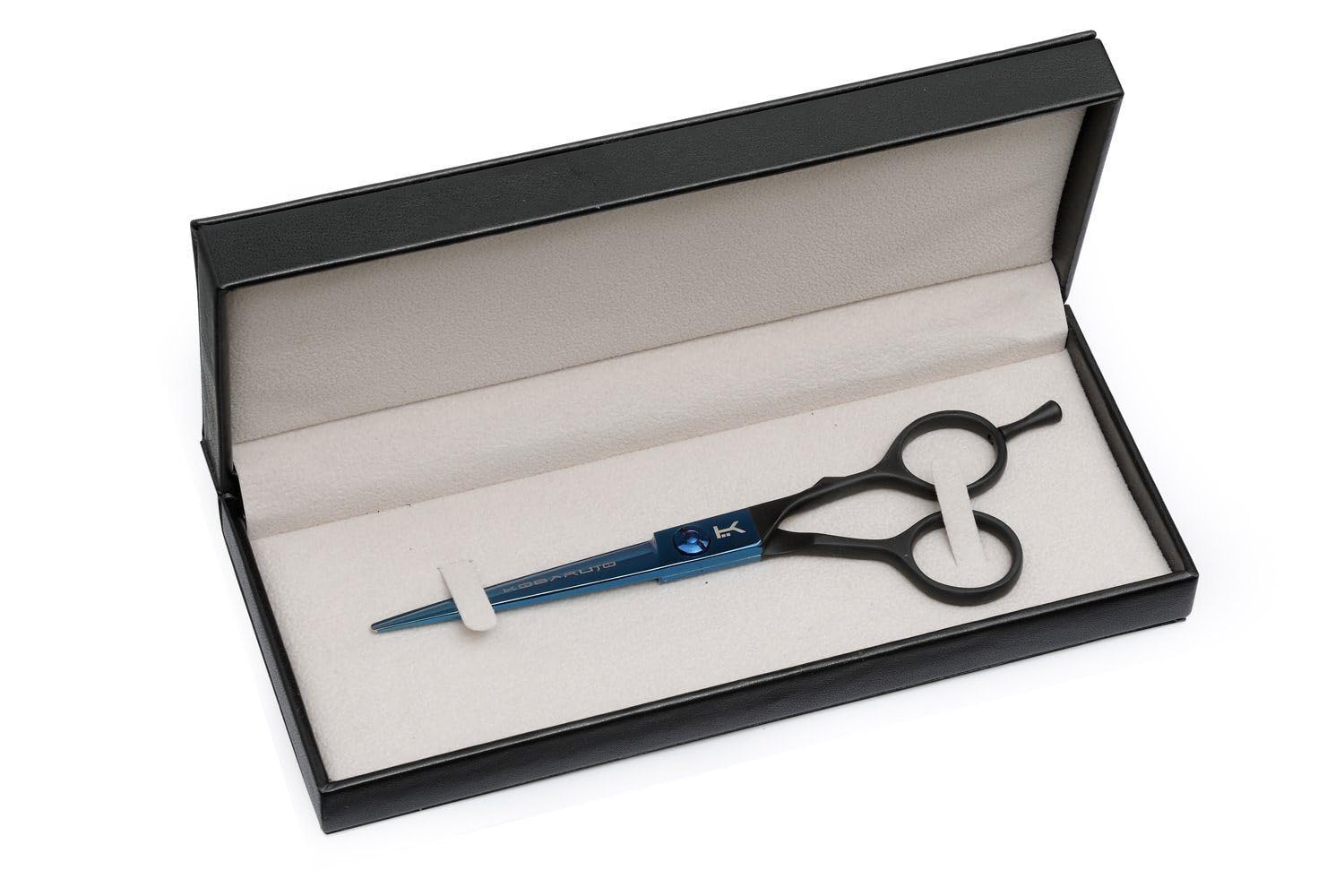 Kobaruto Cobalt Hairdressing Scissors are an extremely high quality professional tool. These Hair scissors are highly durable as they are hand crafted from a supreme Japanese cobalt alloy making the scissors life unparalleled in the professional barber and hairdressing industry. Kobaruto Cobalt Hair Scissors are light weight and have a smooth gliding action, the satin black non slip finished handles and polished Blue Cobalt blades give these scissors an exclusively unique feel. These professional hairdressing scissors have an adjustable bolt that joins the blades and can tighten or loosen the blades according to the stylists preference. Kobaruto Cobalt scissors feature ballistic blades which are ideal for everyday use, and are guaranteed to assist every barber, stylist and hairdresser taking the art of hairdressing to a whole new level.