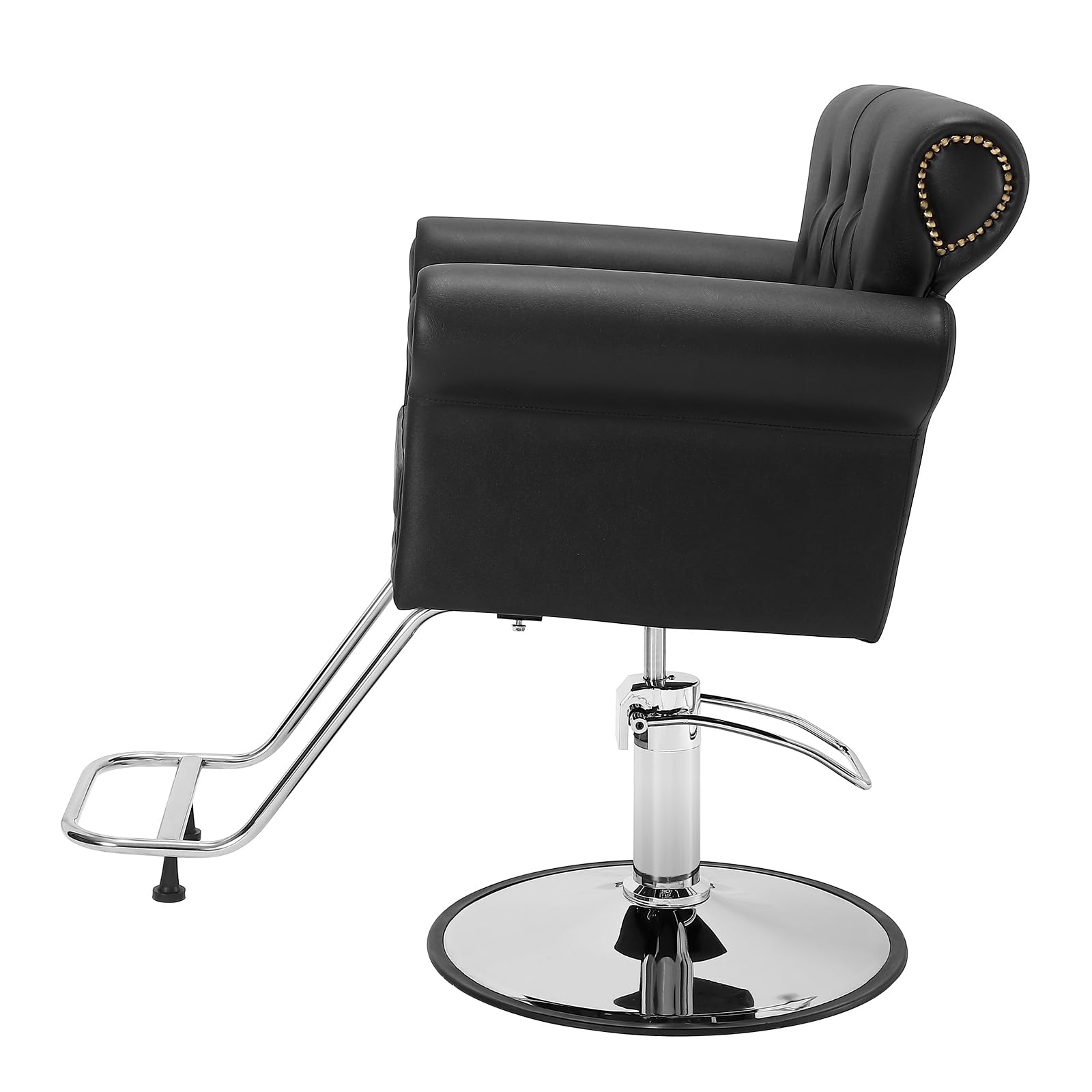 - Versatile Use: With fully enclosed armrests and a classic circular metal base frame, this hair stylist chair complements any space, including hair salons, makeup studios, tattoo parlors, and beauty clinics.
